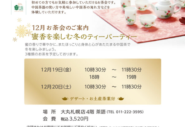 | 所在地 | 〒060-0005 札幌市中央区北5条西4-7 大丸札幌店4F 茶語(Cha Yu)CHINA TEA HOUSE 大丸札幌店 |